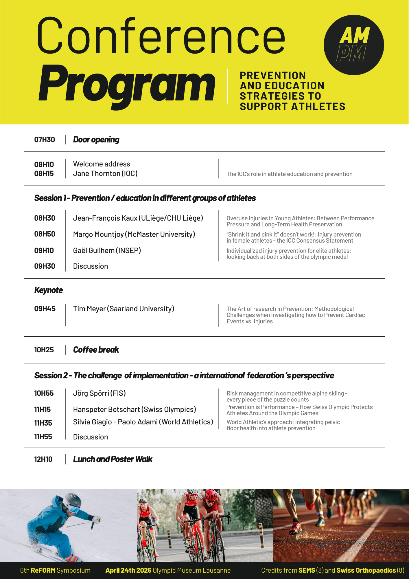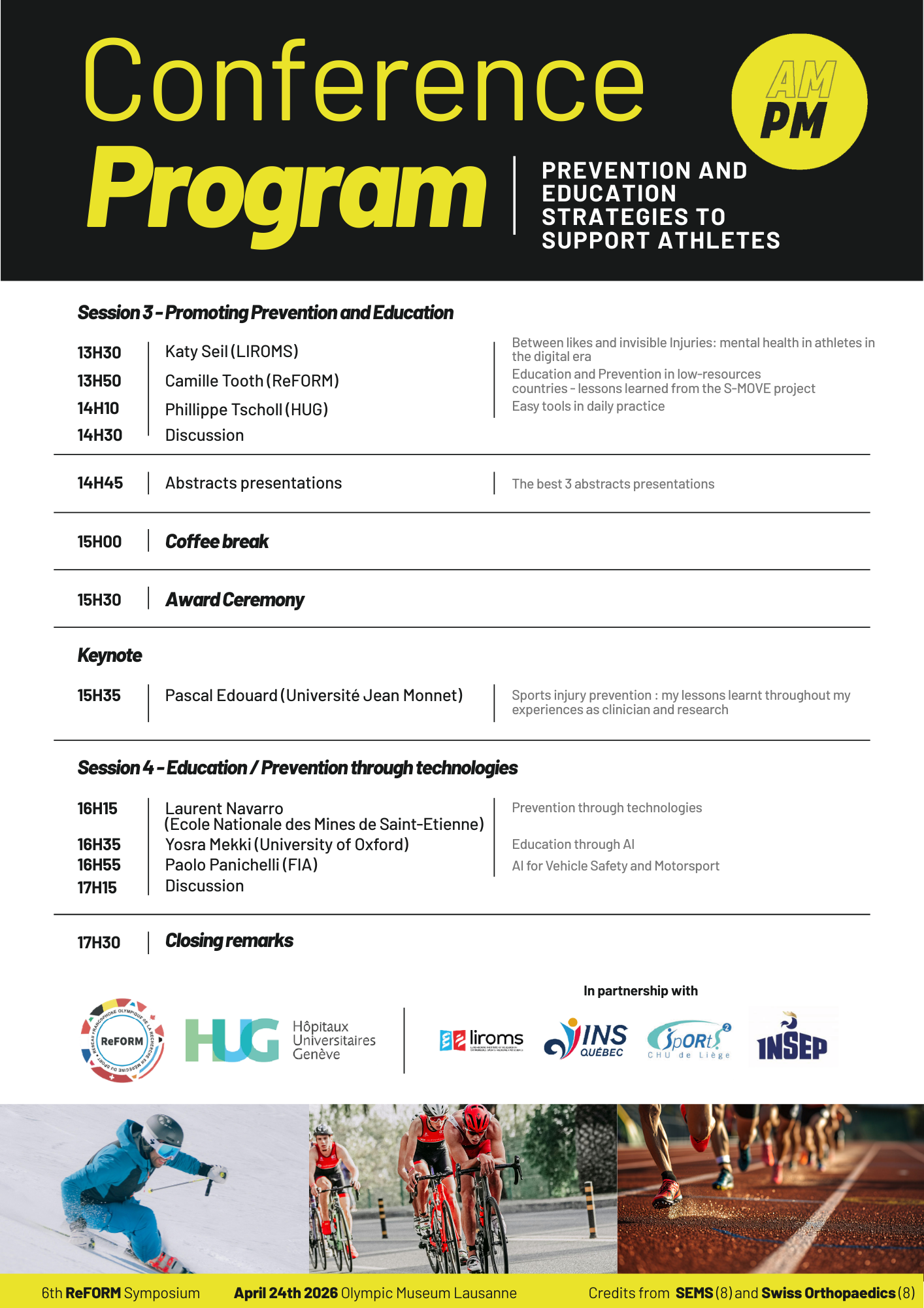 The 6th ReFORM Network Symposium will take place on April 24, 2026, at the Olympic Museum in Lausanne. This new edition will bring together researchers, clinicians, healthcare professionals, international federations, and field practitioners around a central question: