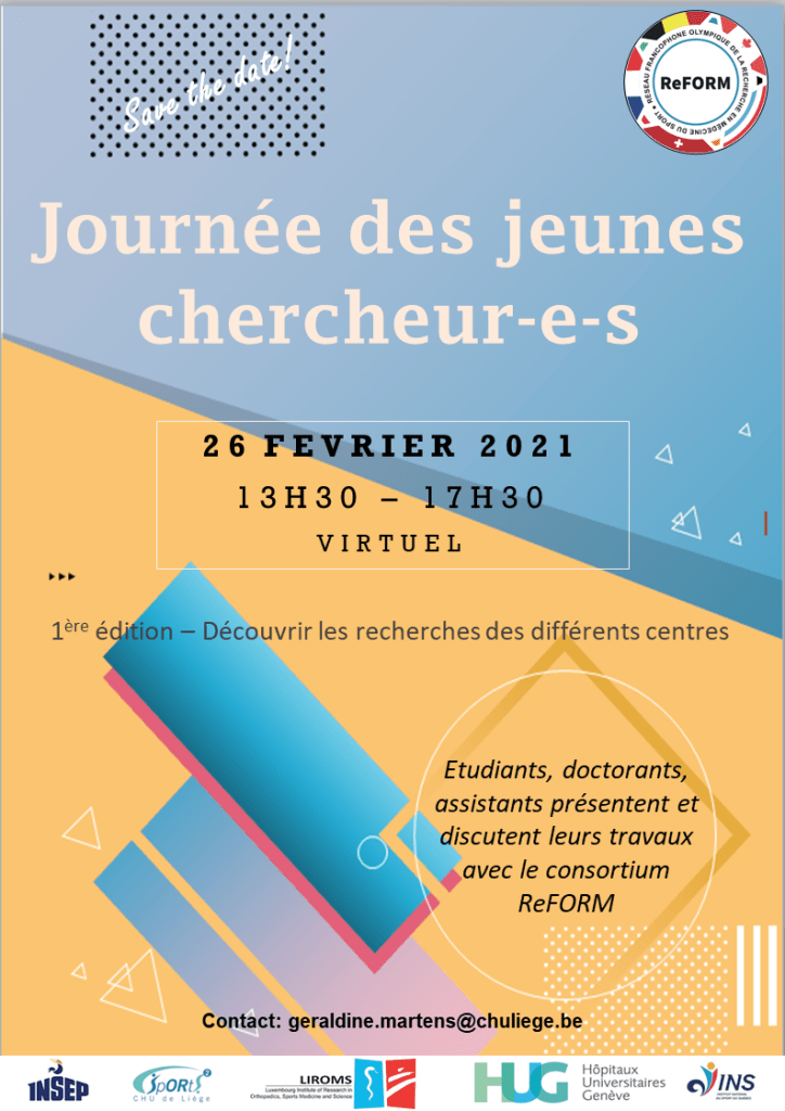 December 10, 2025Le 26 février 2021, ReFORM a organisé sa 1ère Journée des Jeunes Chercheurs. Lors de cette rencontre virtuelle, une poignée d’étudiants, (post-)doctorants, assistants et internes des cinq centres ReFORM auront l’opportunité de présenter l’état actuel de leurs travaux de recherche à l’ensemble du consortium international.